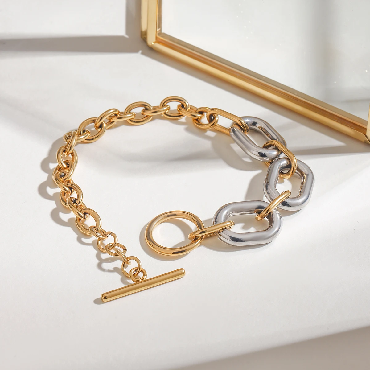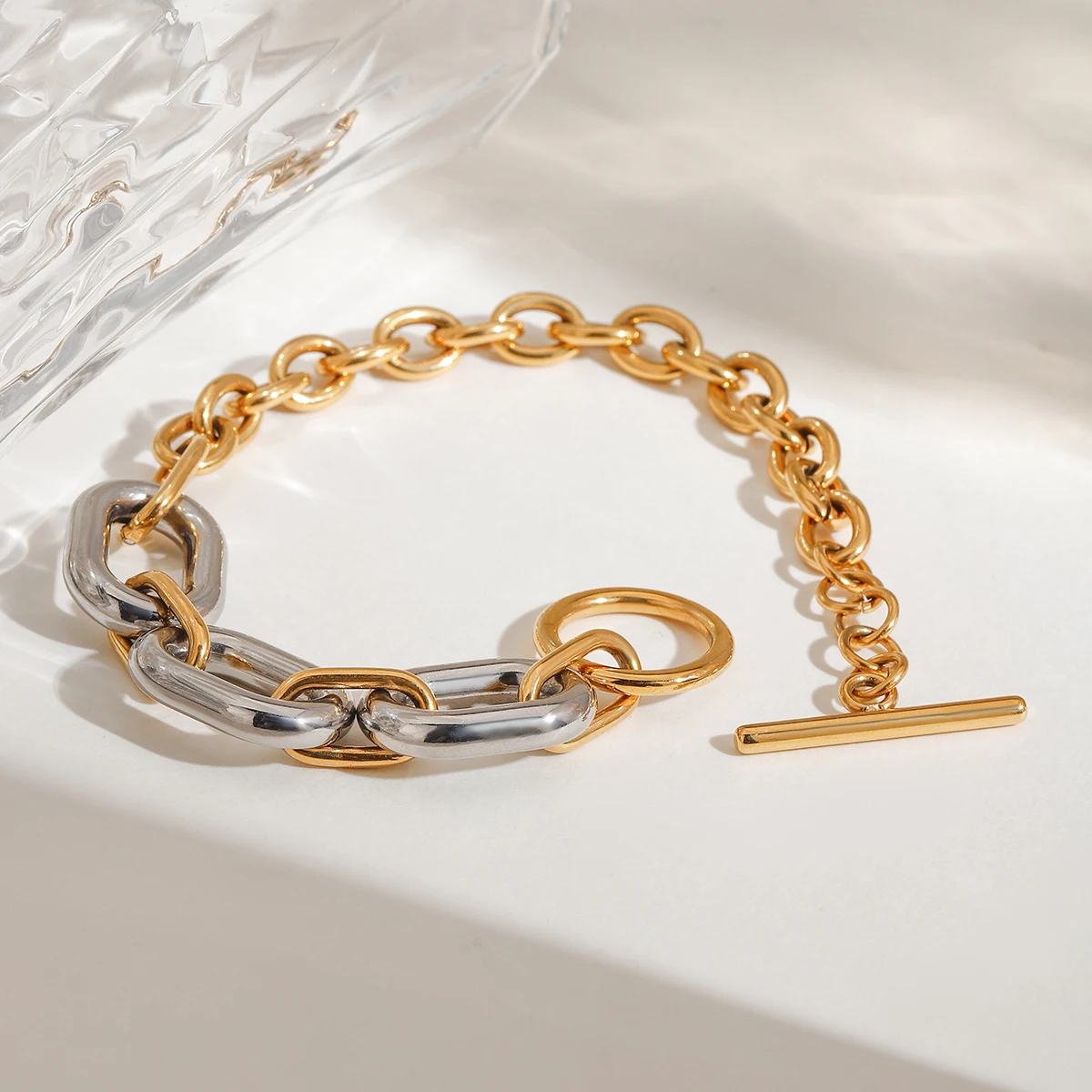 Type:18K PVD Plated Stainless Steel Matching Color cross chain QT buckle bracelet waterproof asual sporty Jewelry