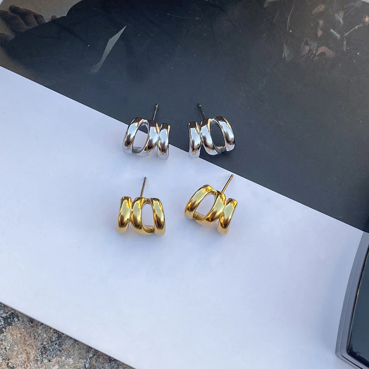 2025 Minimalist Line Design 14K Gold-plated Stainless Steel Waterproof Earrings Daily Commuting Girls Trendy Jewelry